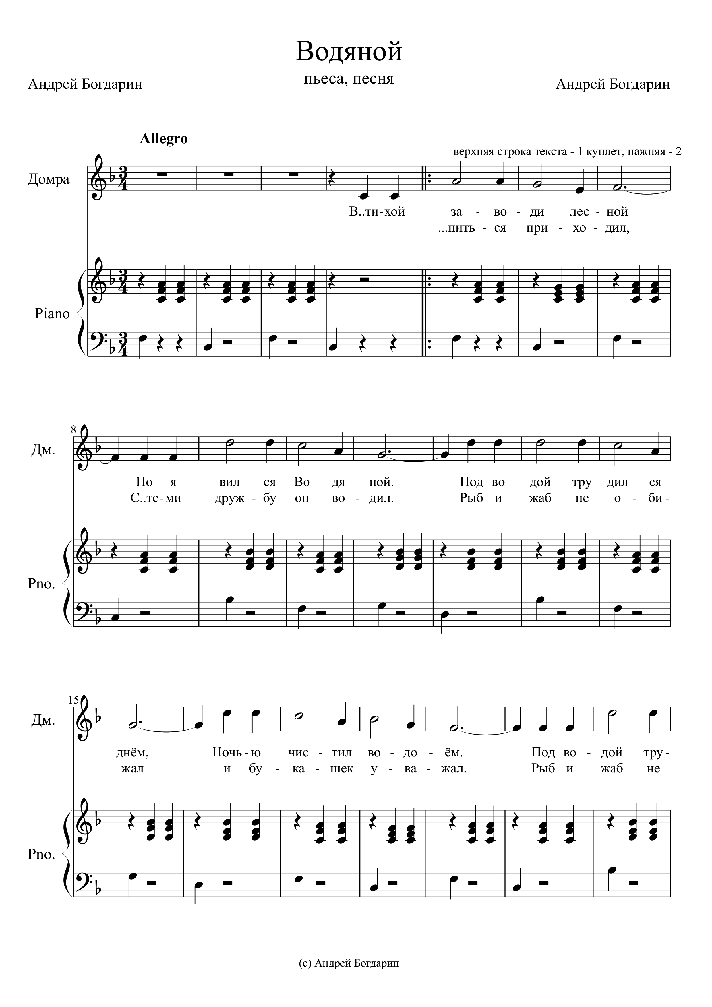 Ноты пьесы, песни «Водяной»