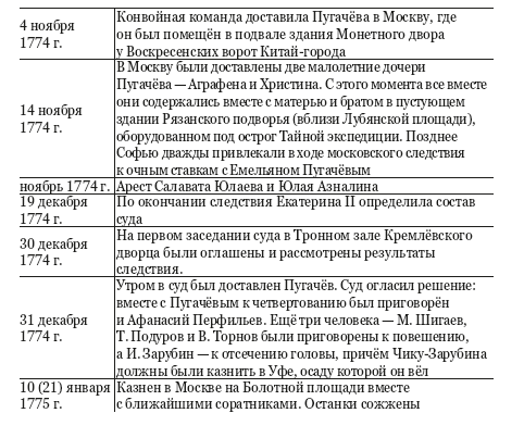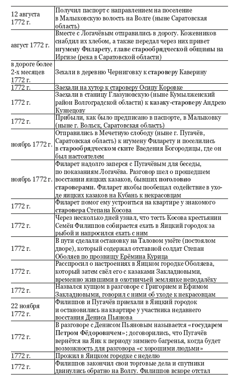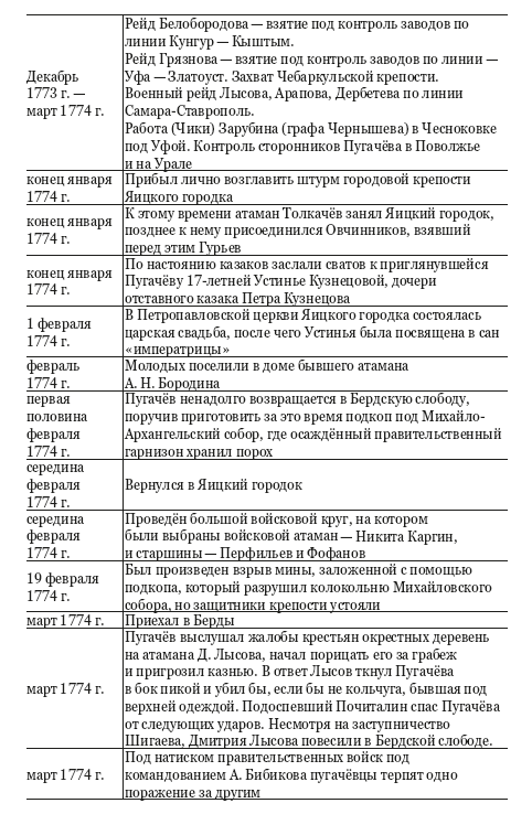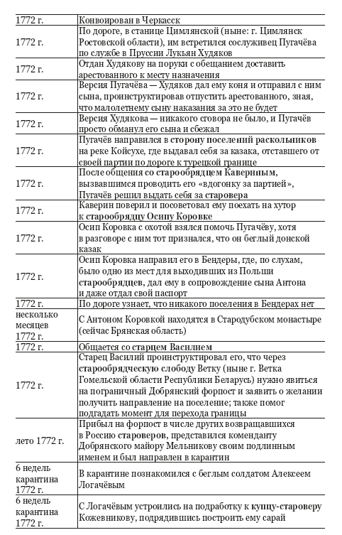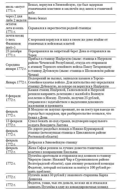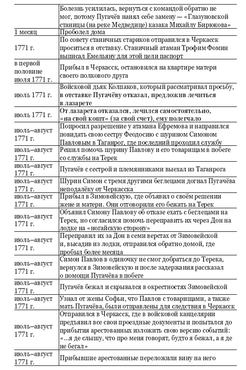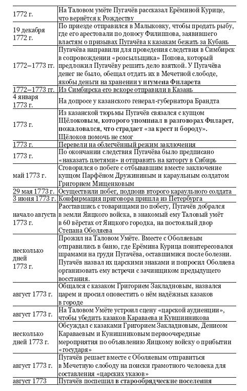 Таблица 1. Емельян Пугачёв. Биография[1]