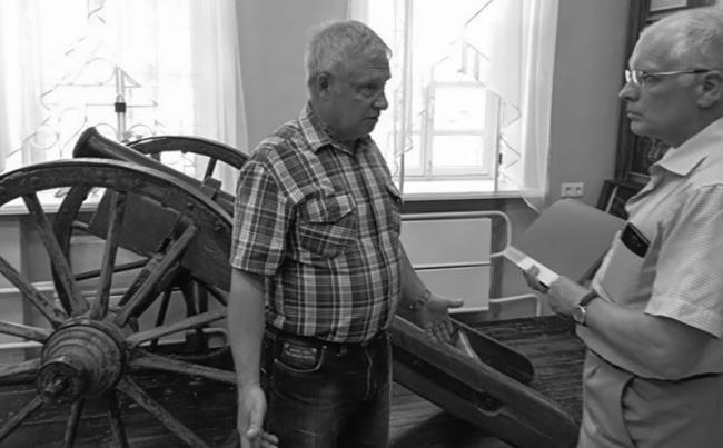 Фото 5. Юрий Петрович Окунцов (слева), заслуженный работник культуры РФ, специалист по Пугачёву и пугачёвщине и Андрей Валентинович Болдырев (справа) – рядом с пушкой пугачёвцев
