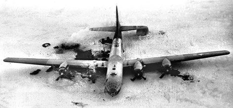 Американский бомбардировщик Б-29, потерпевший аварию в Гренландии во время разведывательных полётов по программе Ptarmigan в феврале 1947 г.