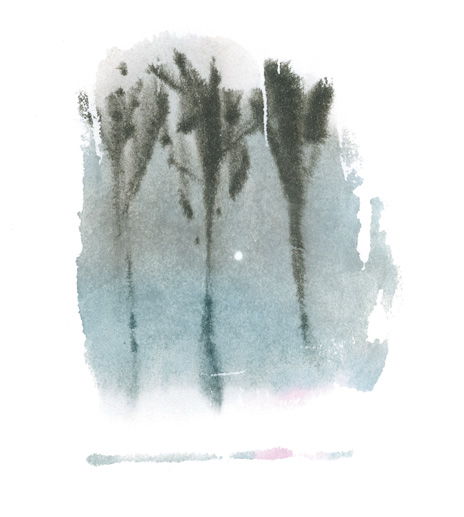 С шелестом деревьев.