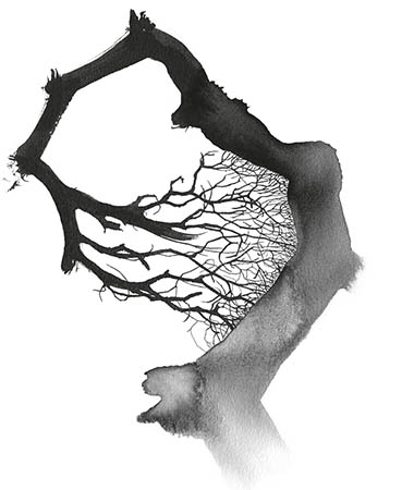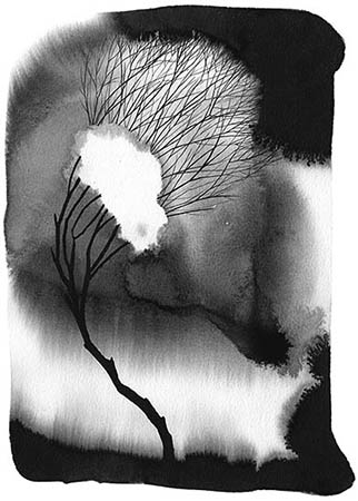Внутри меня растёт деревоЕго корни становятся крепчеБесцветные живые отростки, используя пути венСтремятся вниз, ищут землюДереву нужен покойЧтобы стоять на одном месте и думать о том, как далеки звёздыЯ чувствую: в моих лёгких распускаются новые и новые листьяС каждым днём становится труднее дышатьДереву не хватает света моего внутреннего солнцаЕго ветки прорастают в мои руки, пытаясь поднять их вверх к огромной яркой звездеИногда я чувствую, что дерево думает вместо меняЯ понимаю это по мыслям о будущем столь далёком, что не могли родиться в голове человекаКогда я ищу своё отражение в серебряной скатерти озераКо мне прилетает чёрная птицаОна садится напротив меня и пристально смотрит в пока ещё едва заметную пустоту моих глазПустота растётПтица знает об этом,Она выбирает в какой из двух глазниц будет её гнездоОстрый звенящий клюв пугает меняОднажды я проснусь стоящим на вершине холма в сверкающем ливне оловянных капель скорбящего небаСотней сильных гибких рук держусь я за ветерМои слова желтеютЯ разговариваю с прошлымОно бесконечноЯ знаю только что-то одноЗавтра родится тот, кто обрежет сучьяОсталось время для одного вздоха«Дай досмотреть, как умирает день…»