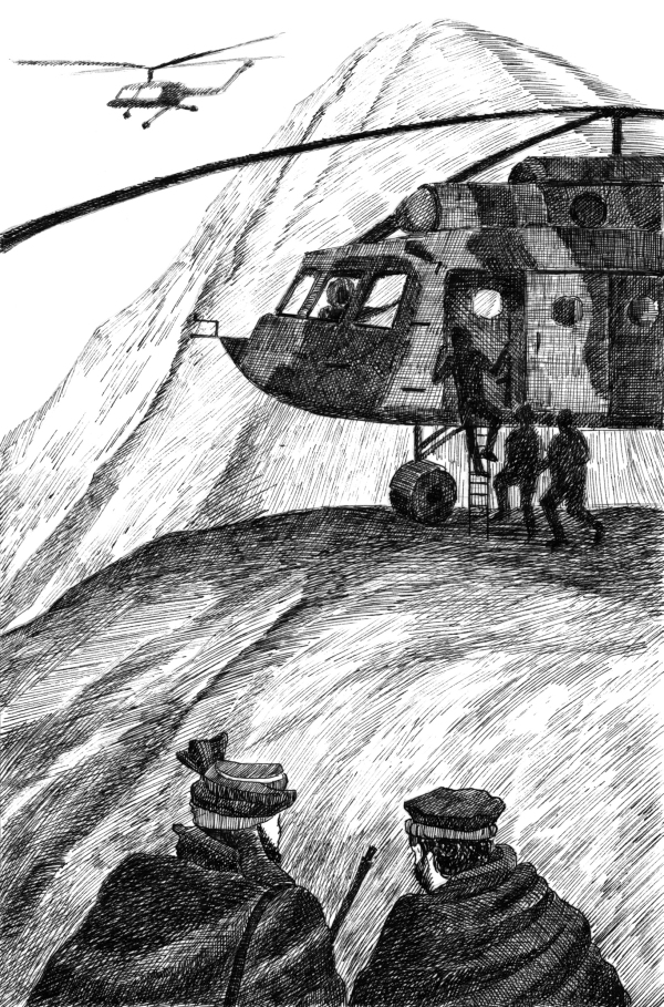 Подполковник вместе с Зубоировым забросил в вертолет курьера. Тот обо что-то ударился, заорал, но его крик потонул в грохоте винтов. Подполковник, пропустив на борт вперед себя радиста и Зубоирова, наконец забрался и сам. Он устало опустился на колени, облокотился о ствол автомата, вытер рукавом липкий, горячий пот с лица и зажмурился.