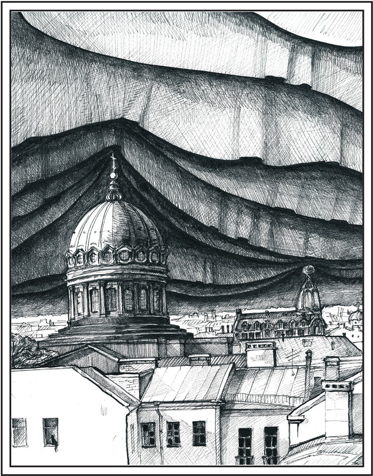 Русские мастера могли возвести небоскрёб без единого гвоздя, а вот строить города на западный манер не умели. Поэтому царь Пётр выписал европейских архитекторов, и те принялись возводить дома, как привыкли: понаделали высоких острых шпилей – как у себя на родине. Но не учли они особенностей петербургского неба. Тучи здесь особенно плотные, забиты дождём под завязку и расположены слишком близко к земле.