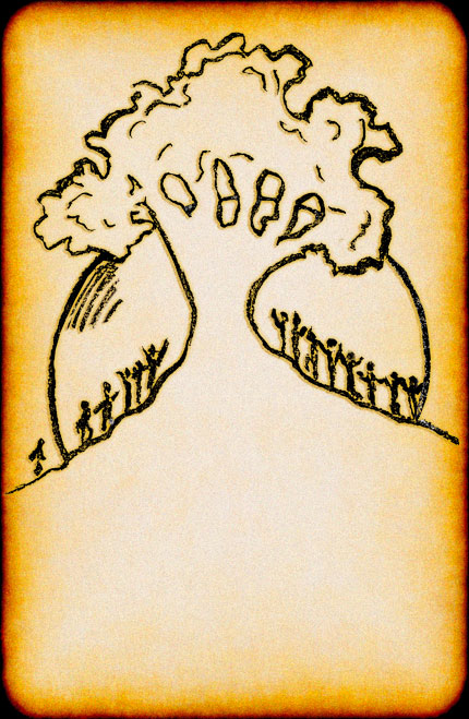 В воздухе неизвестно откуда возникает маленький шарик, светящийся изнутри. Сделав круг над дикой поляной, он опускается в высокую траву, и оттуда, подобно цветку из земли, вырастает длинноволосая седая женщина с посохом. Она поднимает руку, и деревья умолкают.