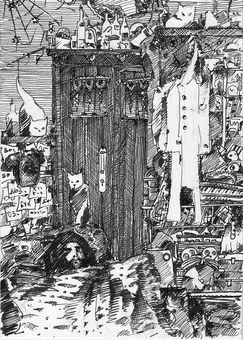 Он всё выкинул и спал на полу, на рогожке. Использовал бабушкину комнату он как мастерскую, постепенно захватывая всю квартиру. Хозяин к нему благоволил, даже трепетал.