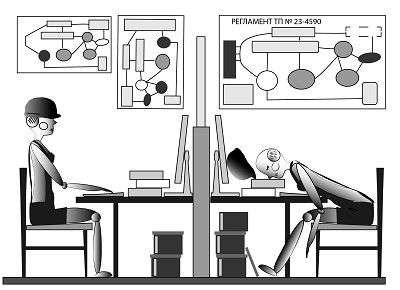 Дело в том, что в таких структурах каждый шаг прописан заранее, на любое действие есть положение, должностная инструкция, регламент и т. п., поэтому рядовому бухгалтеру и думать не надо, просто читай параграф и делай то, что там указано.