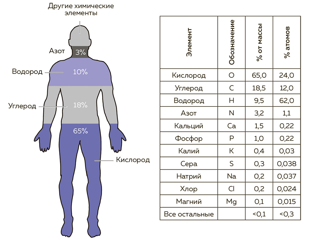 Тело взрослого человека состоит из более чем 60 химических элементов
