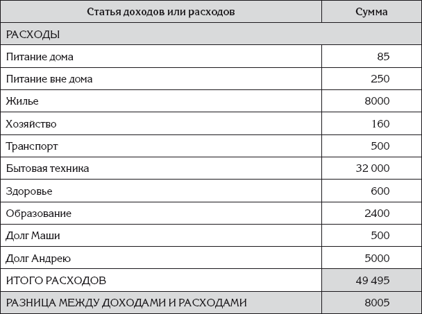 Аналогичные замечания можно сделать и относительно второй части отчета: расходы по статьям Долг Маши и Долг Андрею по своей сути не являются расходами.
