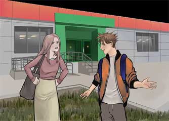 Она выбежала из-за угла школы, и ей очень не понравилось то, что она увидела.