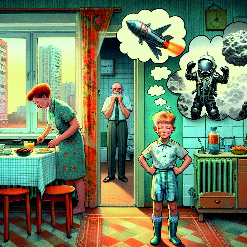 Утро в семье Максима начиналось неизменно одинаково. Мама готовила на всю семью завтрак, а интеллигентнейший отец – инженер, брился в ванной, приводя себя в порядок перед работой. Максим еще нежился в постели и пытался досмотреть свой утренний сон, в котором он был отважным космонавтом, выполняющим секретное задание парии и правительства на борту орбитальной станции «МИР». Все было так, ровно до того момента, пока в одно октябрьское утро в жизнь семьи Максима уверенно и бесповоротно не постучалась своей могучей рукой Геля. Стук в дверь невероятной силы заставил вздрогнуть всю семью. И даже Максим, во сне ощутил удар астероида о борт своего космического корабля, и начал экстренную проверку всех систем. Сырники аппетитно шкворчали на сковородке, и придавали повисшей тишине ощущение утренней безмятежности выходного дня.