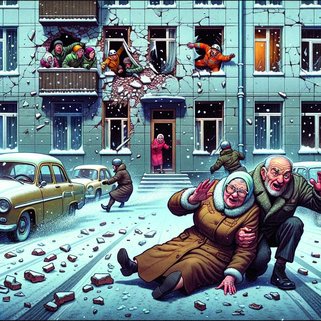 Вторая пара, повинуясь приказу и инстинктам самосохранения, последовала за первой. Обе пары не сговариваясь, поползли темпом, несвойственным для их возраста к ближайшей канаве, где их и нашли сотрудники скорой помощи. Окна квартиры Руслана были разбиты вдребезги. Да что там Руслана, на всем этаже и парочкой ниже, также окна зияли чернеющей пустотой.