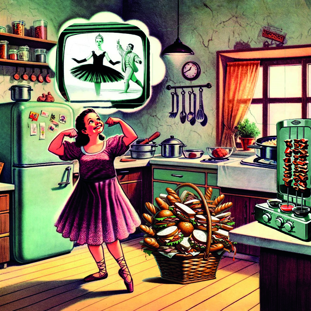 Решено, сделано. На следующий день Геля с родителями отправилась в балетную школу, которая была одна единственная на всю округу, учитывая размеры города, в котором проживала Геля. Войдя в белоснежное здание богини Терпсихоры, с неизменным атрибутом в руках в виде бутерброда с ветчиной, Геля принялась с любопытством рассматривать портреты великих балерин и балерунов, висевшие на стенах этого заведения. Её горящие восторгом глаза, и падающие изо рта крошки бутерброда, вселили в родителей других детей животный ужас. Папа наклонился к уху мамы Гели и тихонько, чтобы Геля не дай Бог не услышала, произнес: «Надо вызывать три бригады скорой помощи, а не одну, как обычно».