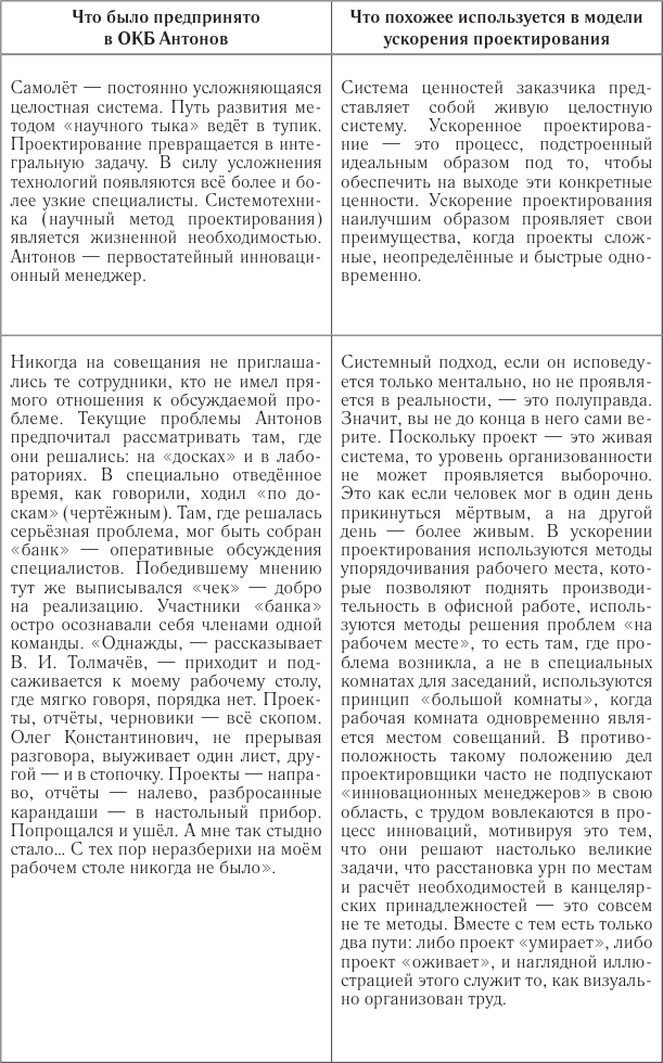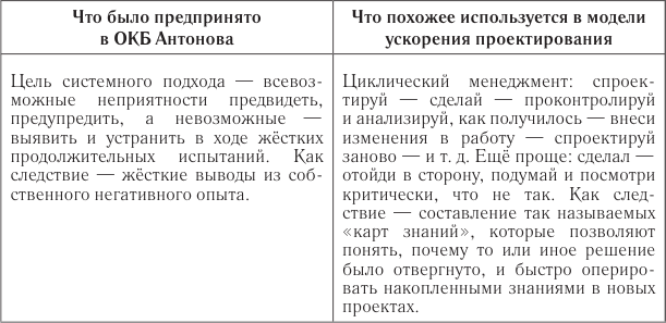 И тут нам, в отличие от автопроизводителей, крупно повезло, поскольку у нас есть продукт, которым мы действительно можем гордиться: это самолёт Ан-124 «Руслан». История создания самолёта и ОКБ Антонова достаточно подробно описана в книге Геннадия Ельцова «История воздушного превосходства» со слов его главного конструктора Виктора Ильича Толмачёва. Это история акцентирована на том, как создавались конкурентные преимущества в сегменте грузового самолётостроения. Кроме того, проведённый анализ феномена Ан-124 не просто показывает, что достойных конкурентов на мировом рынке воздушных перевозок крупногабаритных и тяжёлых грузов до 2014 года не было, но и что другого опыта проектирования техники, по всем статьям лучшей в своём классе в мире, у нас нет. При этом проектирование самолёта не в самой богатой стране мира тоже является существенным фактором. Материал этой книги позволяет проанализировать отечественный опыт, который на двадцать лет опередил появление модели ускорения проектирования в строительстве, сопоставить его с иностранным опытом и выявить некоторые черты нашей модели, которые характеризуют её в лучшую сторону.