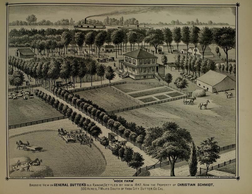 Ральф Уолдо ЭмерсонПолучилось интересно. Бурул, как старший над оставшимися в Форте-Росс калмыками, отправил десяток Аюка с пятью приданными ему испанцами, присланными генералом Мариано Гваделупе Вальехо под командованием своего младшего брата – майора Хосе Мануэля Сальвадора Вальехо и семью индейцами племени нисенан, на чьей земле было построено ранчо «Hock Farm», проверить, а что там с ранчо сейчас. Это то самое ранчо, которое Джон Саттер для себя как бы построил, старость там на природе проводить, пением птиц наслаждаться и смотреть, как голландские коровы с кудрями на лбу, им туда завезённые через половину мира, травку щиплют. Сидеть на кресле в беседке, увитой виноградом и попивать своё вино, полученное с виноградника рядом с ранчо. А ещё молодая задастая и сисястая мулатка, чтобы при этом и тем, и тем крутила перед ним, расставляя на столе приборы и возбуждая аппетит… не только в пузе, но и в чреслах. Не дожил, к сожалению.