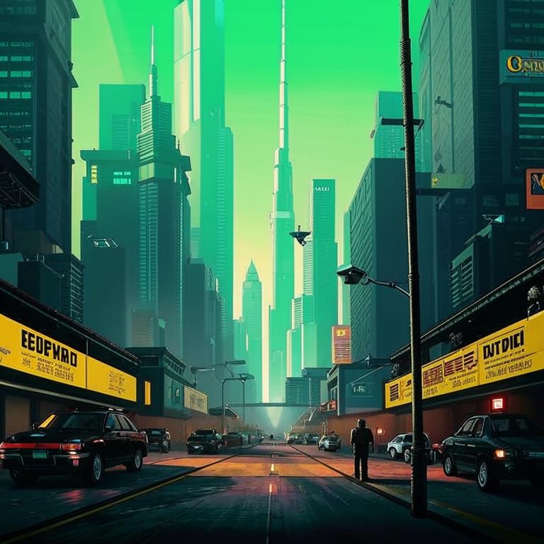 Уинстон, спеша на работу, не мог не заметить, как эти абсурдные элементы быта сливаются в единое целое. Его взгляд скользил по архитектурным чудесам – небоскрёбам, венчаемым пропеллерами, которые, казалось, неустанно вращались, задавая ритм всего города. Он видел, как на каждом шагу технологии и традиции переплетаются в забавном, гротескном танце: от старинных ламповых мониторов, отсвечивающих мягким светом, до ультрасовременных гаджетов, контролирующих даже мельчайшие нюансы человеческого поведения.