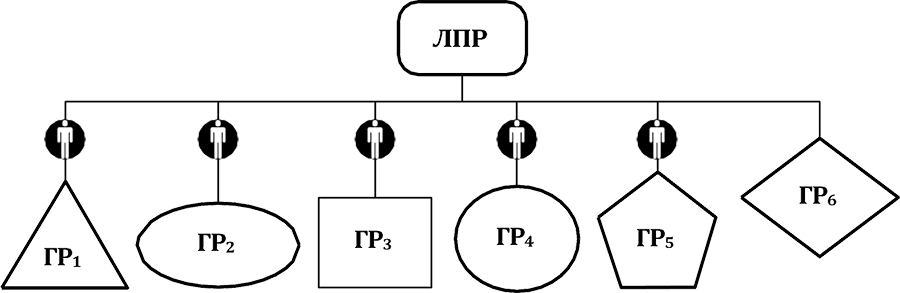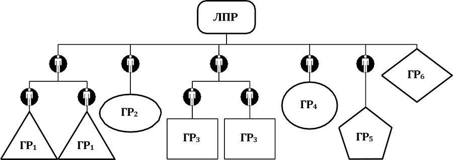 ЛПР – лицо, принимающее решение (первый руководитель); ГР1—ГР6 – группы исполнителей