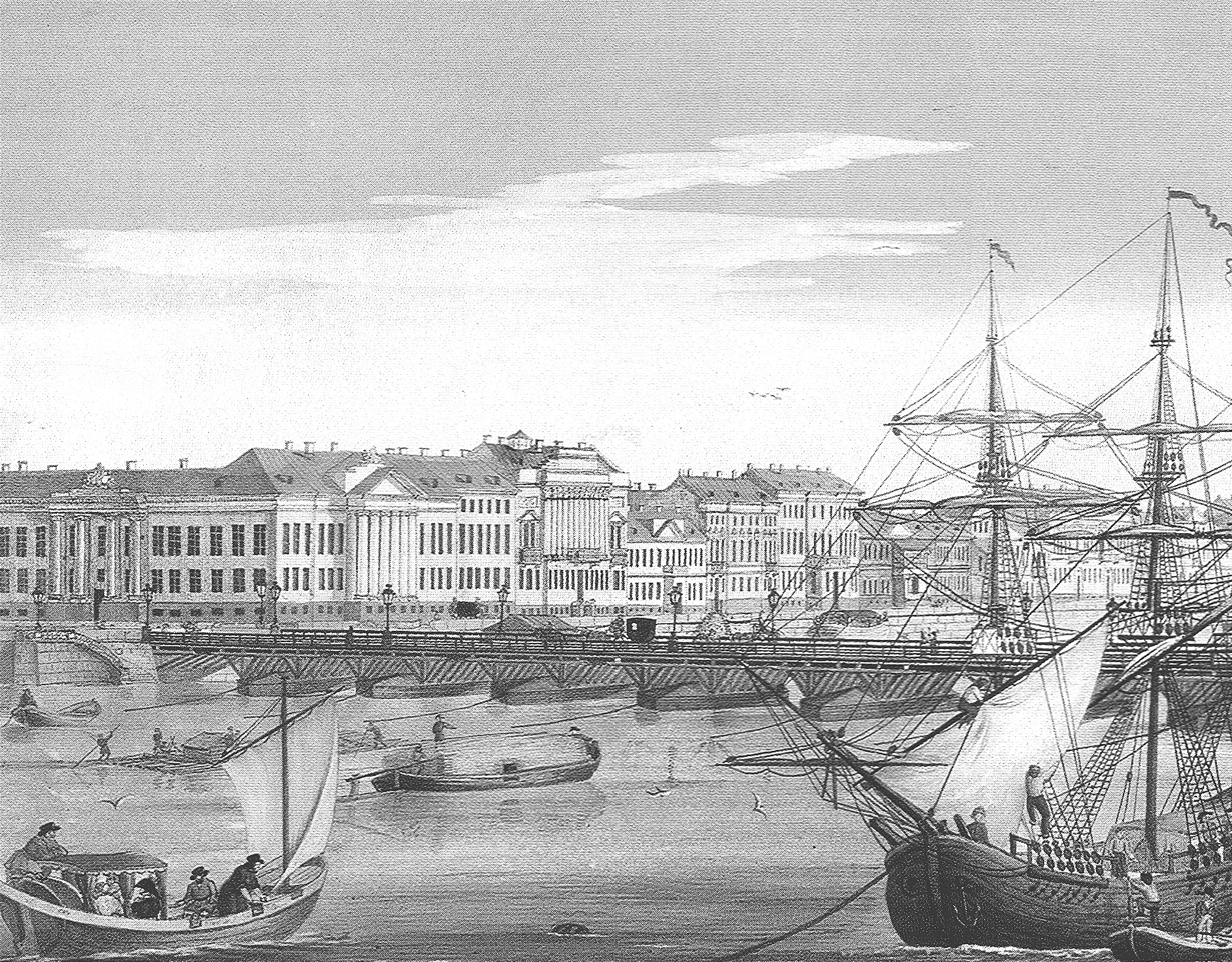 На набережной реки Мойки мы познакомимся с прошлым двух зданий, причем обе постройки хорошо известны всем любителям истории Петербурга. В доме № 12 на Мойке последний год своей жизни провел поэт Александр Сергеевич Пушкин. Отсюда 27 января 1837 г. он уехал на Черную речку, к месту назначенной накануне дуэли. Сейчас в доме открыт Пушкинский музей. Второе здание на набережной реки Мойки ранее занимала известная гостиница «Демут».