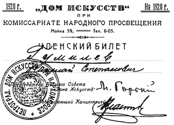 ДИСК. Членский билет Н.С. Гумилева