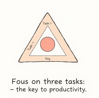 Эти три вещи могут быть как крупными задачами (например, написать отчёт или подготовить презентацию), так и мелкими, но значимыми шагами (например, позвонить клиенту или составить список покупок).