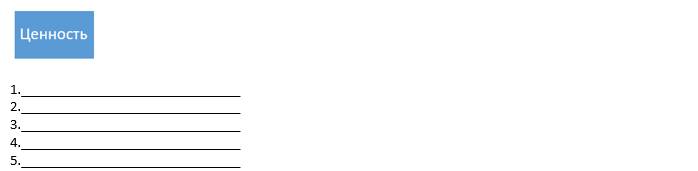 Пишем – 5 своих личных ценностей. РАНЖИРОВАНИЕ ЦЕННОСТЕЙ по номерам по степени важности для тебя. Сравните свои ценности от самой важной в порядке уменьшения значимости для тебя.