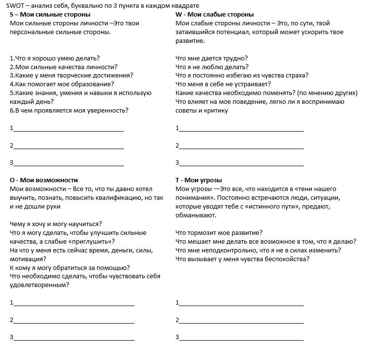 2. Сделай анализ себя и окружения