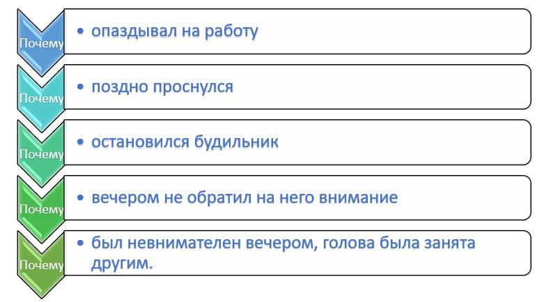 Теперь мы будем использовать технологию 5 почему в принятии решения.