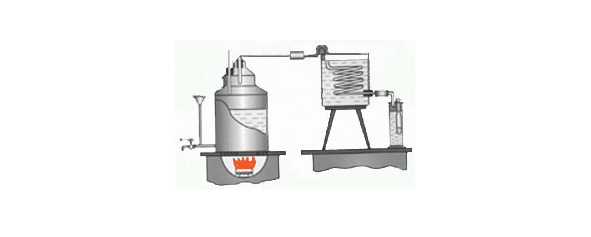 Перегонка освобождает этанол как от легколетучих, так и от тяжелых фракций органических веществ (кубовый остаток). В кустарном (домашнем) приготовлении «алкогольных напитков» в качестве очистки используют тот же метод перегонки или, как его еще называют, дистилляции, но значительно упрощенный. Емкость с брагой соединяют шлангом со змеевиком, опущенным в холодную воду, на выход змеевика надевается трубка, конец которой опускается в емкость для сбора этилового спирта. При нагреве емкости с брагой происходит кипение браги и выделение легких фракций, пары которых, охлаждаясь, оседают на змеевике и стекают в приемник. Это наиболее ядовитые составляющие браги, они не годятся даже для наружного применения и удаляются. При последующем нагревании происходит отделение паров этилового спирта, которые, так же оседая в змеевике, конденсируются и стекают в емкость для приема спирта. Здесь важно не перегреть брагу, иначе вместе с этиловым спиртом начинают испаряться и более тяжелые (а также более ядовитые) вещества. Собранную спиртовую смесь в дальнейшем подвергают вторичной перегонке для очистки от попавших в нее тяжелых веществ. На выходе получают «алкогольный продукт», который в разных странах называется по-разному: самогон, виски, коньяк и т. д. Кустарный (домашний) способ очистки – довольно упрощенный – позволяет относительно легко очистить и концентрировать этиловый спирт, но качество очистки довольно низкое, и конечный продукт все же содержит большое количество посторонних веществ (они, к сожалению, являются сильными ядами).