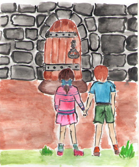 Вова и Аня посмотрели друг на друга и подошли ближе к двери. Вова поднял руку и дернул дверь за огромный железный замок. Дверь была заперта. Тогда Аня три раза стукнула по двери кулаком. После этого замок щелкнул и дверь со скрипом приоткрылась.