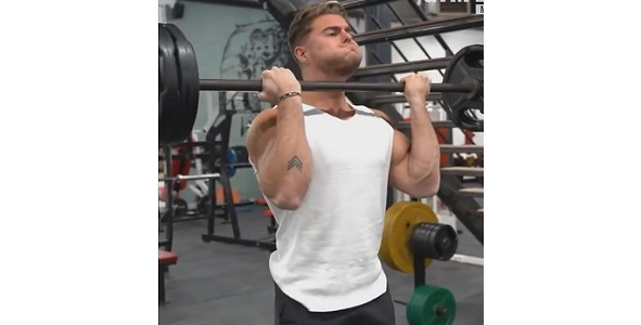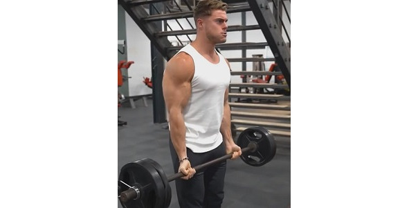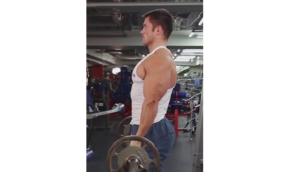 Встать прямо, удержание грифа штанги – на ширине плеч, хватом снизу. Плечевые части руки должны быть прижаты к бокам. Руки прямые, гриф штанги расположен на уровне бедер. Согнуть руки в локтях, медленно поднять штангу по дуге от бедер до уровня подбородка, а затем, плавно опустить в исходное положение в обратном порядке.