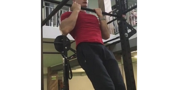 Встать под перекладиной. Подпрыгнув, ухватиться за нее ладонями к себе узким или средним хватом. Сгибая руки в локтях, подтянуться на перекладине до уровня подбородка. Разогнув руки, вернуться в начальное положение, оставаясь в висе и не касаясь земли ногами. При выполнении подтягиваний используется дополнительный груз, крепящийся на поясе.