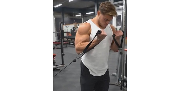 Стоя, наклонить корпус вперед. Ухватившись за спортивный снаряд хватом снизу, выполнить сгибание рук в локтях, поднимая тренажер до уровня груди. Упражнение выполняется как одновременно, двумя руками, так и одной, с использованием опоры для второй руки.