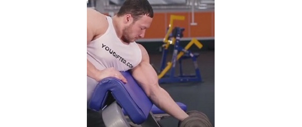 Сесть за тренажер. Удерживая гантель нижним хватом, разместить предплечье руки на подставке. В исходном положении локоть выпрямлен. Медленно согнуть руку до пикового сокращения бицепса, а затем, плавно опустить гантель, возвращаясь в исходное положение.
