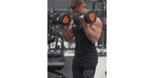 2. Сгибание рук с гантелями с применением хвата снизу, и точном выполнении, без использования «читинга».