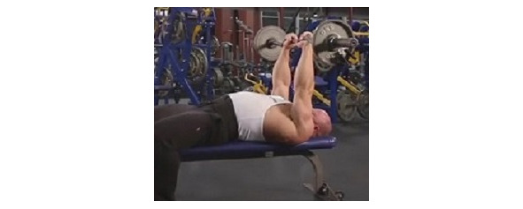 Лечь на спину. В исходном положении, удержание штанги происходит ладонями от себя, руки согнуты в локтях, снаряд находится за головой или на уровне лба. Удерживая плечевые части рук неподвижными, медленно разогнуть руки в локтях до вертикального положения.