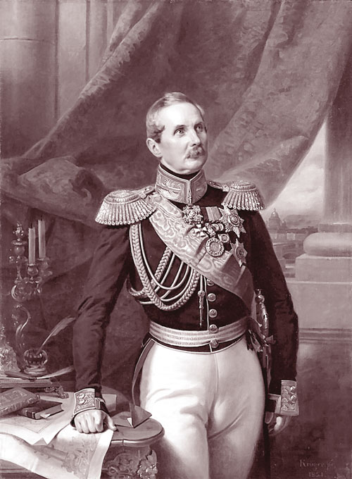При воцарении Императора Николая Клейнмихель был уже генерал-лейтенантом с Анненской лентой и Владимирской звездой (33-х лет от роду). По удалении от всех должностей Аракчеева он изменил последнему, который до самой смерти не мог ему этого простить. При образовании штаба военных поселений Клейнмихель был назначен директором вновь образованного департамента этих поселений. В 1831 году он был назначен дежурным генералом в войска, действовавших в наших западных губерниях против вторгнувшихся в них польских мятежников{19}, причем распоряжался дурно до того, что действия этих войск не велено даже считать походом против неприятеля. По возвращении в Петербург он приобрел влияние на военного министра графа Чернышева и назначен дежурным генералом Главного штаба Его Величества, с сохранением прежней должности, несмотря на то что Государь явно высказывал Чернышеву свое неблаговоление к Клейнмихелю.