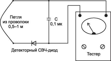 Рис. 1.5. Простая схема индикатора СВЧ-излучения, которую можно собрать самостоятельно