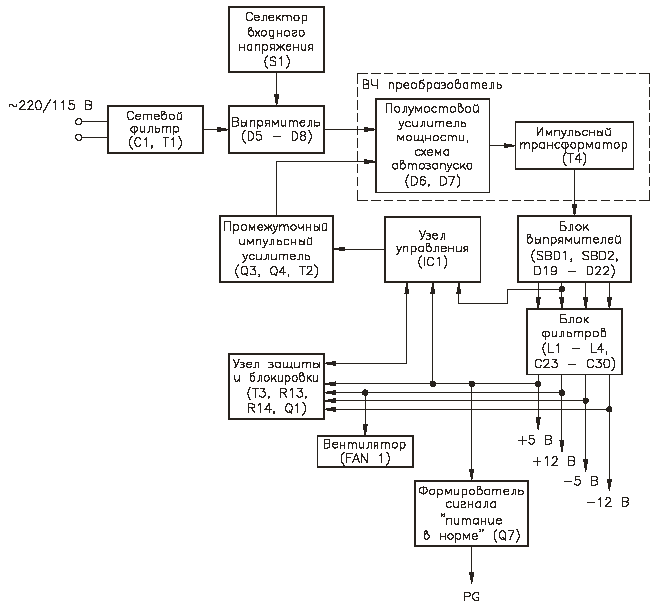Рис. 1.1. Блок-схема электронных узлов ИИП