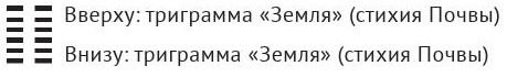 В круговом расположении триграмм (см. с. 316) на юго-западе находится триграмма «Земля» – та самая, удвоением которой получается гексаграмма Кунь. Именно в этом направлении Кунь «находит друзей», а в противоположном – на северо-востоке – теряет их.