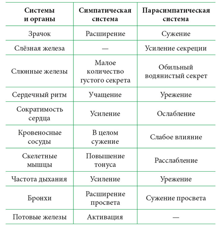 Однако, к сожалению, и парасимпатический отдел способен «подкидывать нам сюрпризы». В целом его роль прямо противоположна тому, что делает симпатика: