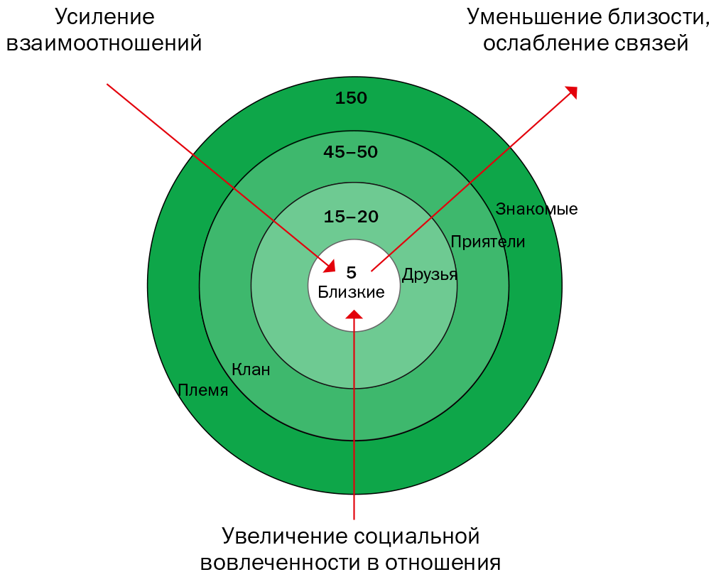 Рис. 4. Структура «внутренней стаи», или «слои Данбара»