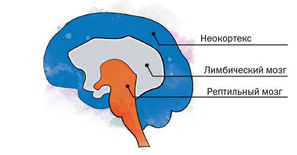 Рис. 2. Схематичное разделение мозга на три этажа в соответствии с их эволюционным происхождением
