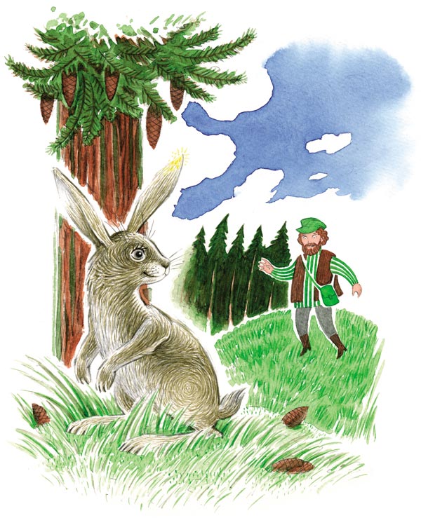 Не обманывают ли меня глаза? Может, это всего лишь игра вечернего света в густой еловой хвое? Осторожно, чтобы ненароком не вспугнуть его, я подошёл поближе. Нет, я не ошибся, шерсть на одном ухе у зайца и впрямь имела изумительный золотистый оттенок. Этакое чудо!