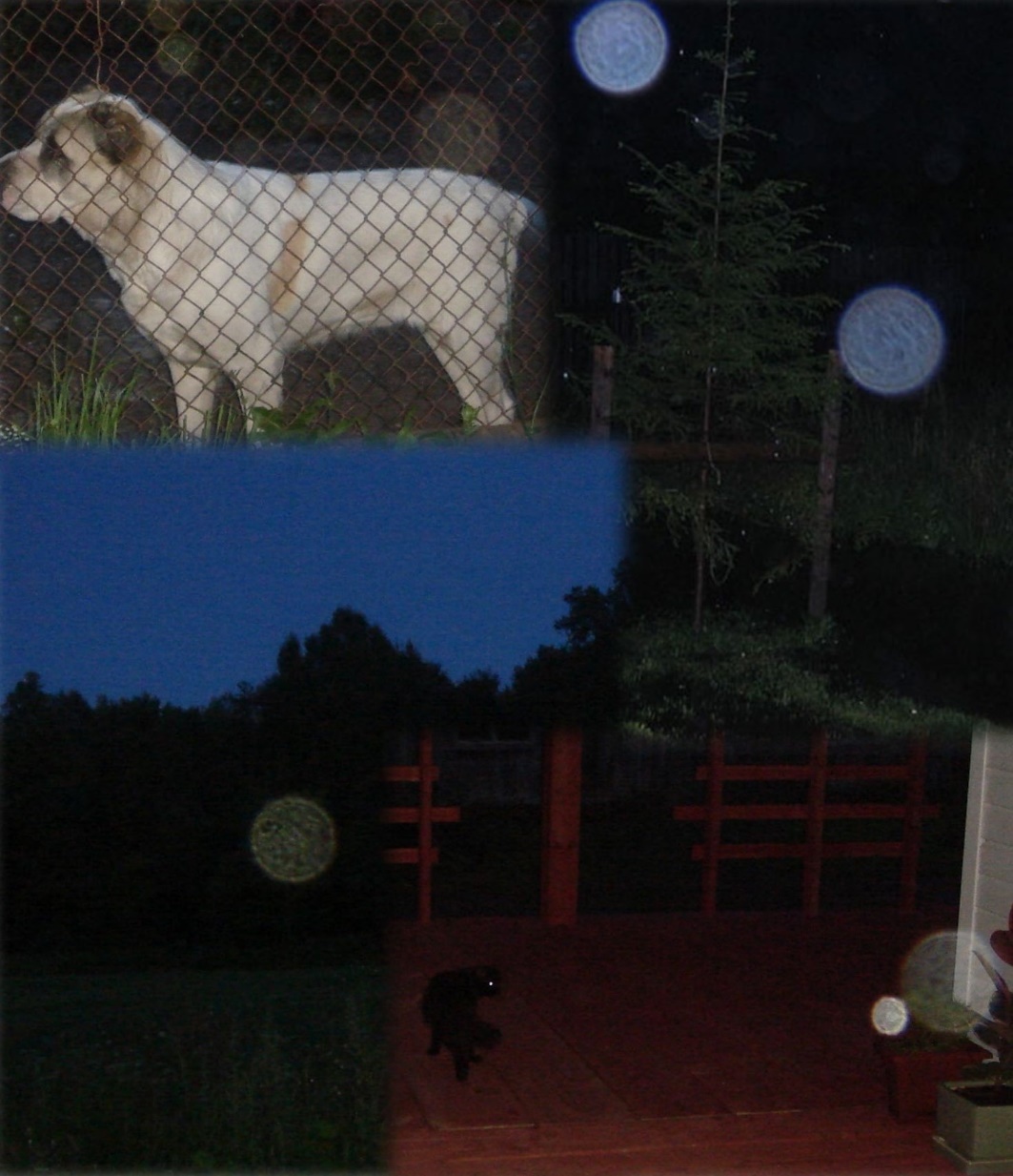 – Ну это просто фантастика, как кошка голову настороженно изогнула и смотрит на два объекта рядом с растением. Причем один объект прозрачный, через него видно угол дома. Черную кошку в темноте плохо видно. Черный изогнутый силуэт и светящиеся глаза. Это подстроить и смоделировать невозможно. А как собаки реагируют на эти существа?