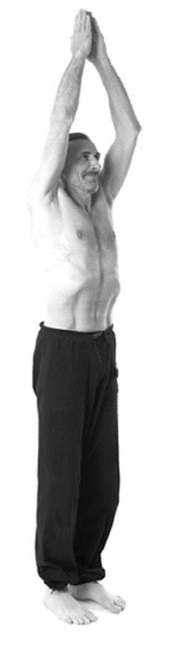 4 Задержите дыхание с соединенными над головой ладонями на 5 секунд.