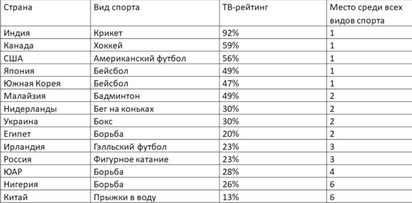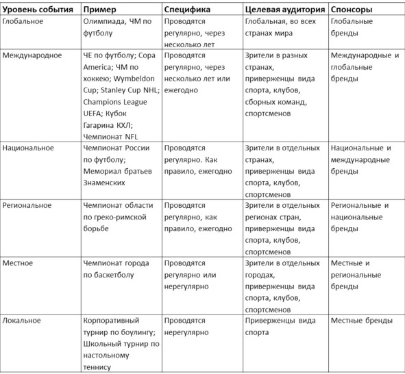 Подчеркнем, что аудиториями обладают не только крупные спортивные события или суперзвезды (табл. 2.3). В зависимости от целого ряда факторов, практически любое спортивное событие обладает тем или иным количеством приверженцев, составляющих его целевую аудиторию.