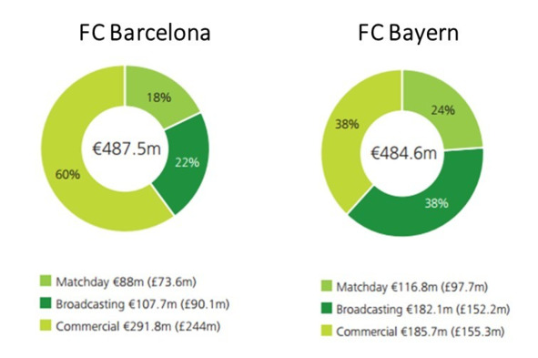Продажа медийных, имиджевых и лицензионных прав (Rights) спортивными организациями также является частью ее коммерческой деятельности. Эти права возникают только в случае наличия у нее большой лояльной аудитории. Например, в бюджетах европейских футбольных топ-клубов значительную долю составляют доходы от продаж телевизионных прав (рис. 3.1).