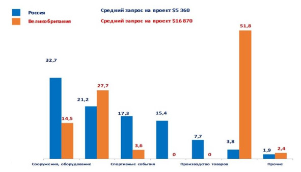 Рис. 3.3 Приоритеты краудфандинга спортивных проектов в России и Великобритании (2015 г)29