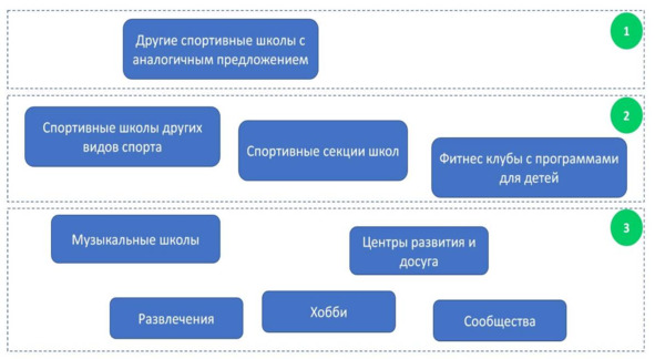 Рис. 5.3 Уровни конкуренции тренировочных услуг детской спортивной школы