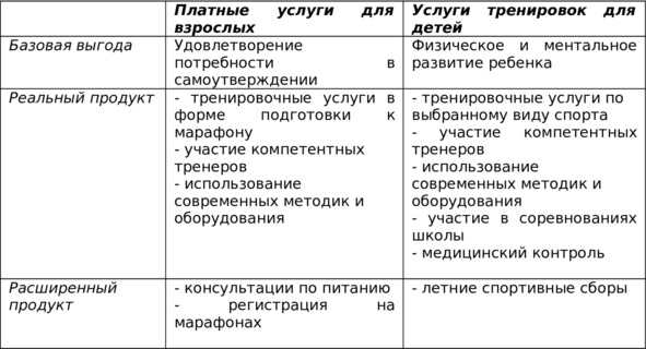 В тоже время, платные услуги для взрослых спортсменов-любителей вводятся в число продуктов школы для получения внебюджетных средств на основе принципа их самоокупаемости. Разные бизнес-модели требуют совершенно разных маркетинговых решений.